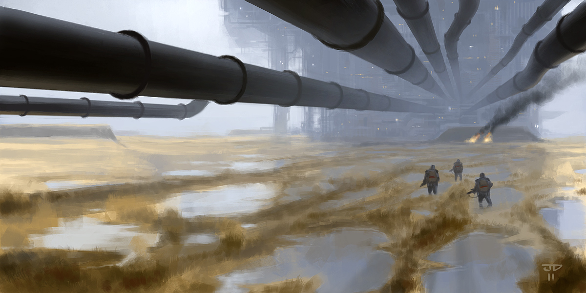 One such idea, It was created fairly quickly. Not an original idea, but I enjoyed it, especially rocks and slum. Photoshop.