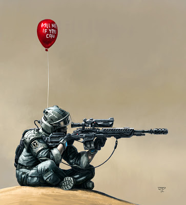 Painting for a skill training. Photoshop, few hours, bloody eyes :) Space marine, based on characters in the book from czech writer Robert Fabian (military sci-fi).